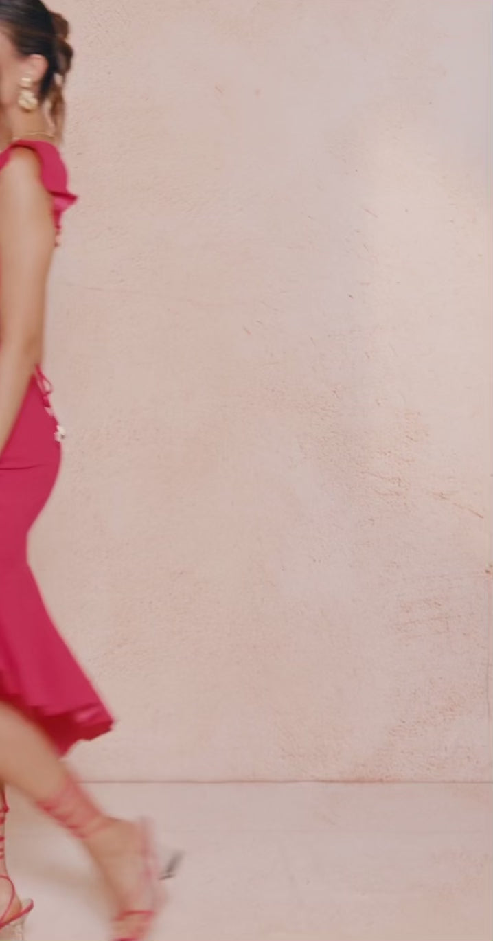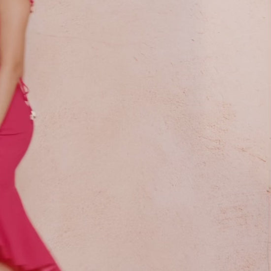 Deep v-neck tie cross back asymmetrical hem dress in pink